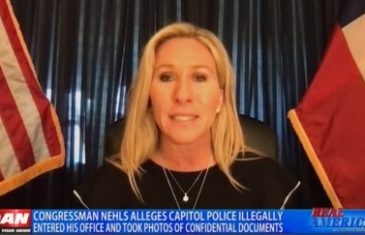Read moreRep. Marjorie Taylor Greene (R-GA) claimed on Wednesday that Speaker Nancy Pelosi is using her “gazpacho police” to spy on members of Congress. Appearing on One America News, Greene said Pelosi is using the Capitol Police to target members of Congress. She cited the allegations made by Rep. Troy Nehls (R-TX), who on Tuesday claimed police had “illegally” entered his office in November […]
